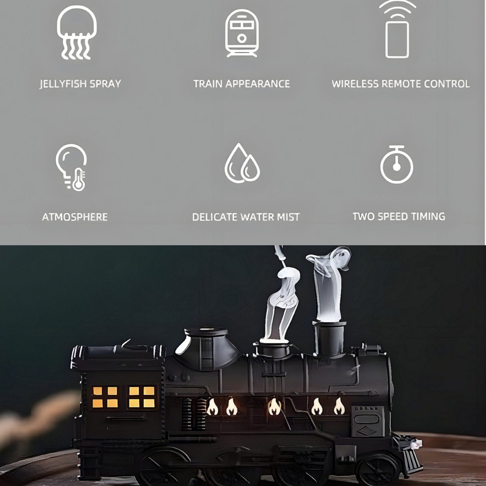 Stylish Steam Engine Design with LED Lighting, 300ml Tank, Remote Control & Ultrasonic Cool Mist
